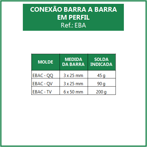 MOLDE PARA SOLDA EXOTÉRMICA CONEXÃO BARRA A BARRA – EM PERFIL (EBA)