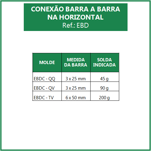 MOLDE PARA SOLDA EXOTÉRMICA CONEXÃO BARRA A BARRA – NA HORIZONTAL (EBD)