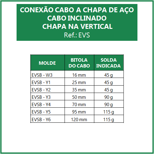 MOLDE PARA SOLDA EXOTÉRMICA CONEXÃO CABO A CHAPA DE AÇO – CABO INCLINADO CHAPA NA VERTICAL (EVS)