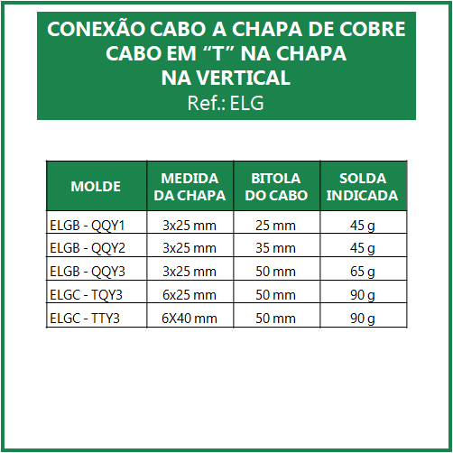 MOLDE PARA SOLDA EXOTÉRMICA CONEXÃO CABO A CHAPA DE AÇO – CABO EM “T” NA CHAPA NA VERTICAL (ELG)