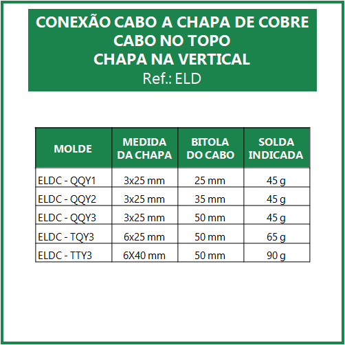 CONEXÃO CABO A CHAPA DE COBRE – CABO NO TOPO CHAPA NA VERTICAL (ELD)