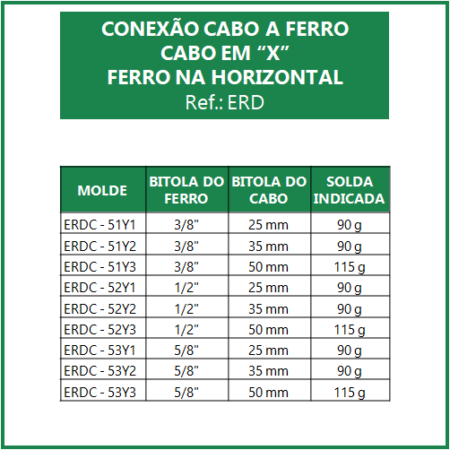 MOLDE PARA SOLDA EXOTÉRMICA CONEXÃO CABO A FERRO DE CONSTRUÇÃO – CABO EM “X” FERRO NA HORIZONTAL (ERD)