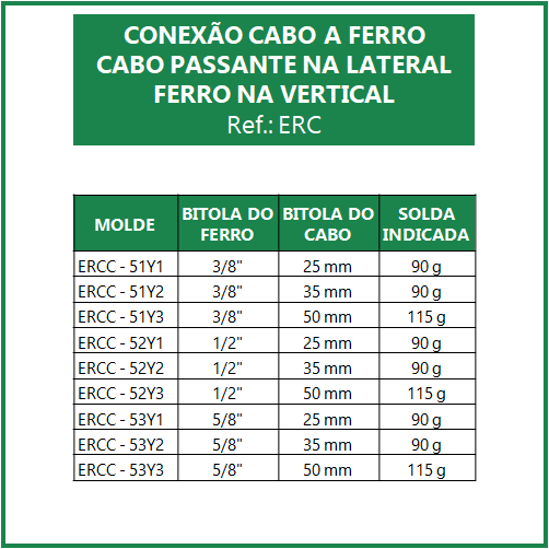 MOLDE PARA SOLDA EXOTÉRMICA CONEXÃO CABO A FERRO DE CONSTRUÇÃO – CABO PASSANTE NA LATERAL FERRO NA VERTICAL (ERC)