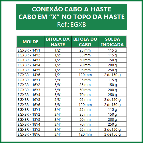 CONEXÃO CABO A HASTE – CABO EM “X” NO TOPO DA HASTE (EGXB)