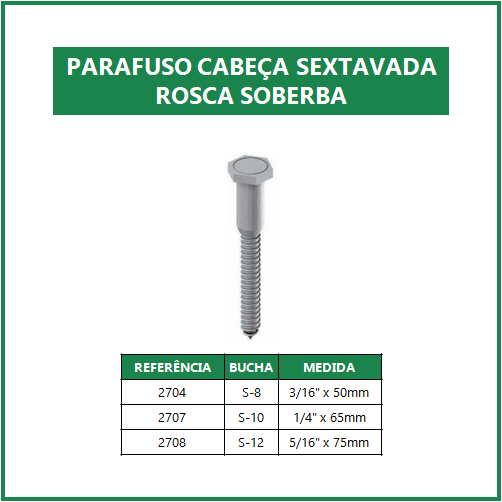 PARAFUSO CABEÇA SEXTAVADA ROSCA SOBERBA