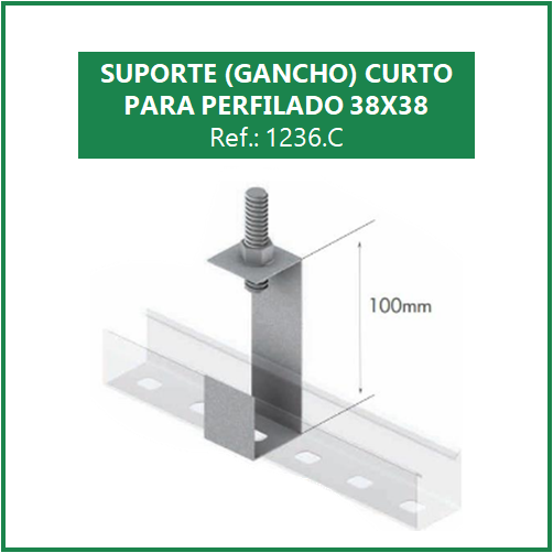 SUPORTE (GANCHO) CURTO PARA PERFILADO 38X38