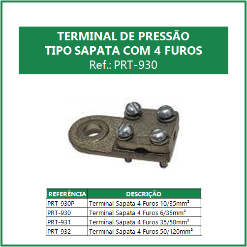 TERMINAL DE PRESSÃO (TIPO SAPATA) COM 4 FUROS